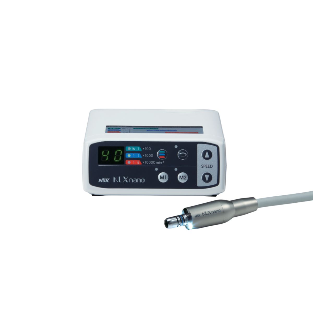 O Micromotor Elétrico NLX Nano NSK é portátil e substitui as tradicionais peças de mão pneumáticas, reduzindo de maneira significativa o nível de ruído, uma vez que o mesmo não necessita de ar comprimido para geração de velocidade, pois, o movimento se dá por indução eletromagnética. A redução de ruído proporciona maior conforto tanto para o profissional como para seus pacientes.